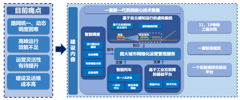 该项目将突破虚拟编组、智能行车调度两个关键技术、构建智能列车一体化平台、工业互联网基础平台两个核心平台,并依托北京地铁 11 号线和 19 号线工程,完成关键技术和系统样机的场景示范应用验证。获批国家发展改革委《智慧城轨新一代智能列车运行系统及平台示范工程》国家发展专项,暨中国城市轨道交通协会《新一代网络化智能调度和智能列车运控系统示范工程》 项目。