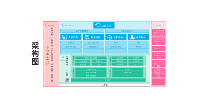 轨道交通运营数据目前分散在20多个专业系统中,急需一套整合全域数据、智能实时监控的的数据可视化开放性平台来提升运营效率,确保运营安全。